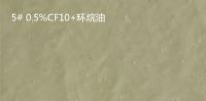1#为不溶性硫黄粉,2#为不溶性硫黄粉+环烷油(S:油=100:23.5),3#为不溶性硫黄粉+1%CF10,4#为不溶性硫黄粉+1%CF10+环烷油,5#为不溶性硫黄粉+0.5%CF10+环烷油(S:油=100:23.5)。
