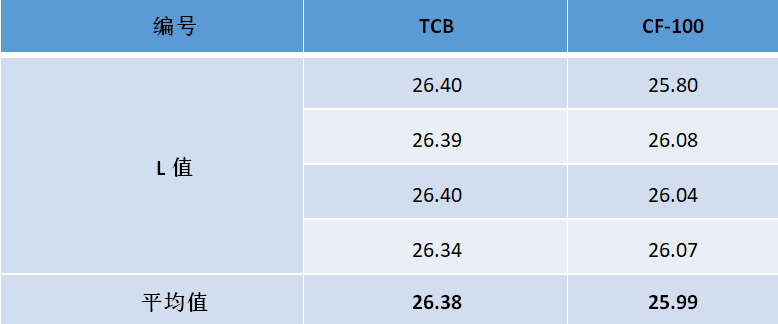 从L值来看,两种炭黑在同一水平且六块色板的L值比较均匀,说明炭黑分散较好且具有同一水平的黑度值。