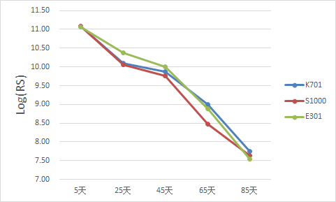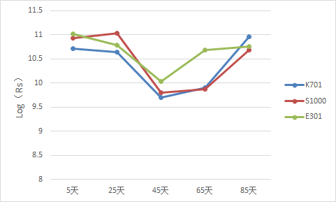 1、三款抗静电剂在初期便有一定的抗静电效果,随着时间的推移抗静电效果亦有所改善。