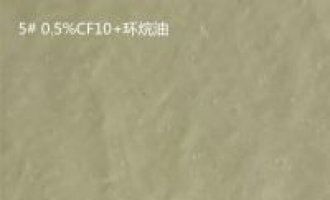 1#为不溶性硫黄粉,2#为不溶性硫黄粉+环烷油(S:油=100:23.5),3#为不溶性硫黄粉+1%CF10,4#为不溶性硫黄粉+1%CF10+环烷油,5#为不溶性硫黄粉+0.5%CF10+环烷油(S:油=100:23.5)。